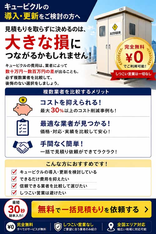 キュービクル(高圧受電設備)を使用していると、「あと何年使えるのか」「いつ更新すべきか」と悩むタイミングが必ず訪れます。設備投資として高額なため、できるだけ長く使いたい一方で、突然の故障や事故は避けなければなりません。