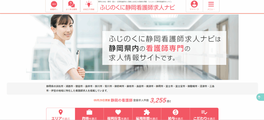 「ふじのくに静岡看護師求人ナビ」は、静岡県内の看護師に特化した求人・転職情報サイトです。県内各地の医療・介護施設の求人を幅広く掲載しています。