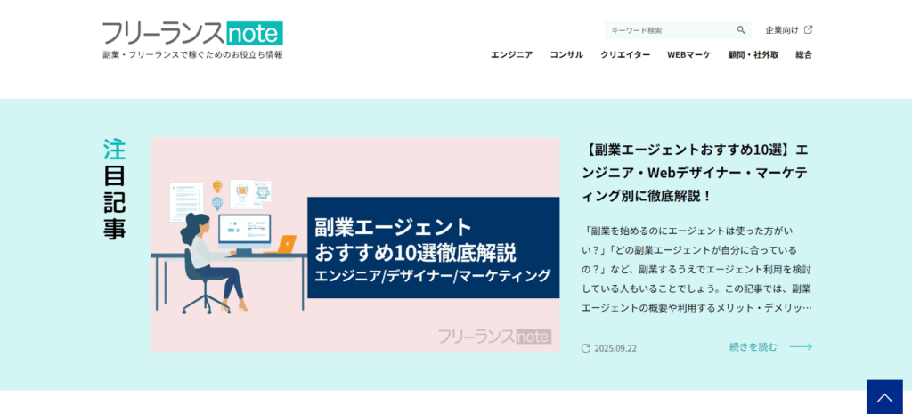 アークワードコンサルティング株式会社が運営する「フリーランスnote」は、副業やフリーランスとして働く個人向けに、実践的で役立つ情報を発信するWebメディアです。