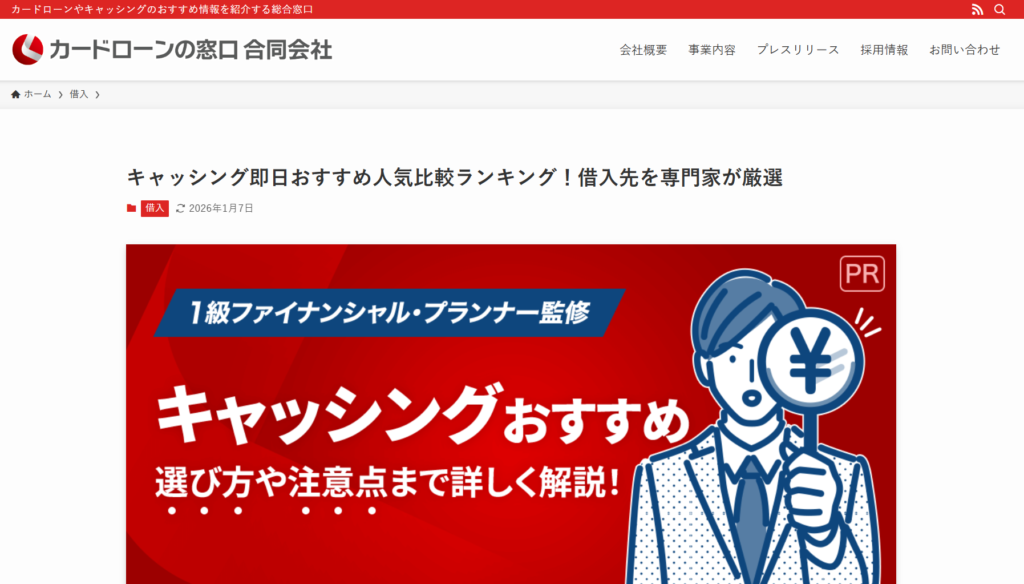 カードローンの窓口合同会社は、カードローンやキャッシングに関する情報を中心に、利用前に押さえておきたいポイントを分かりやすく整理している情報サイトです。