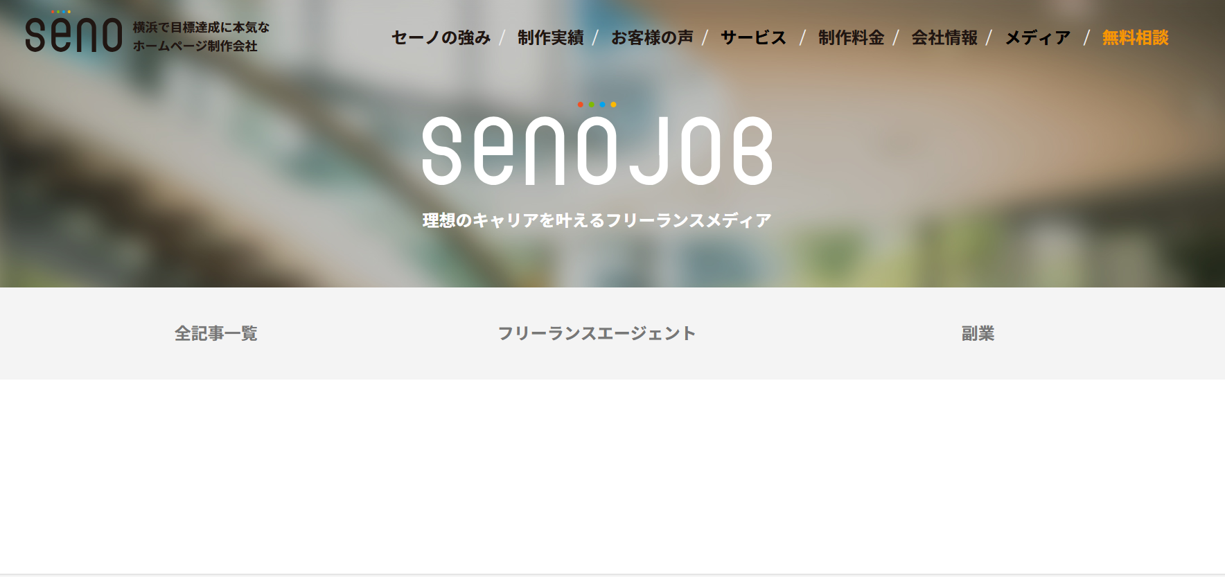 「理想のキャリアを叶えるフリーランスメディア」SENOJOBで、あなたにぴったりの案件を見つけませんか?経験豊富なフリーランスエージェントがスキルを活かせる最適なお仕事をご紹介します。