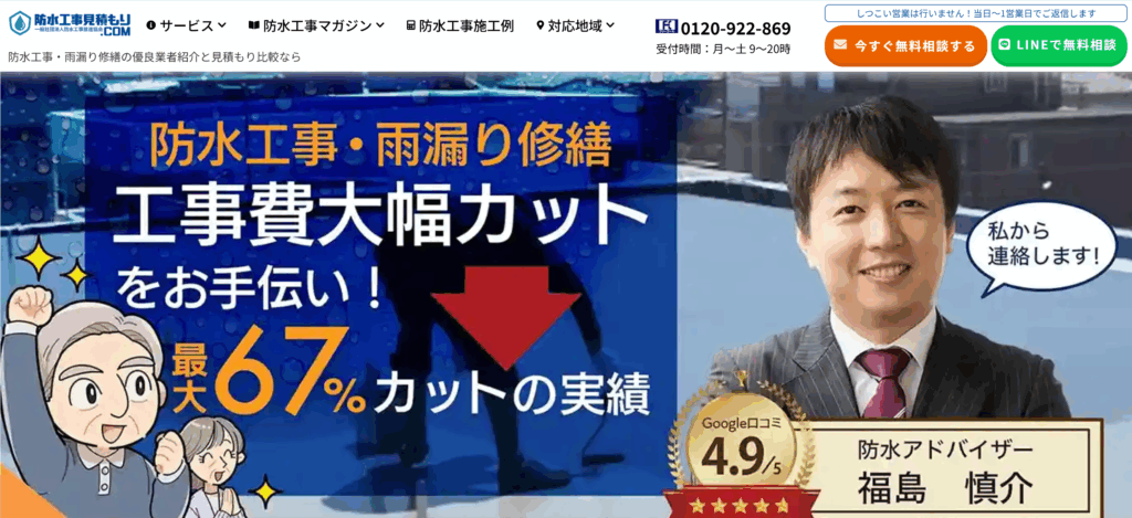 屋根・外壁・ベランダ等の雨漏り・防水工事業者の見積もり比較サイト